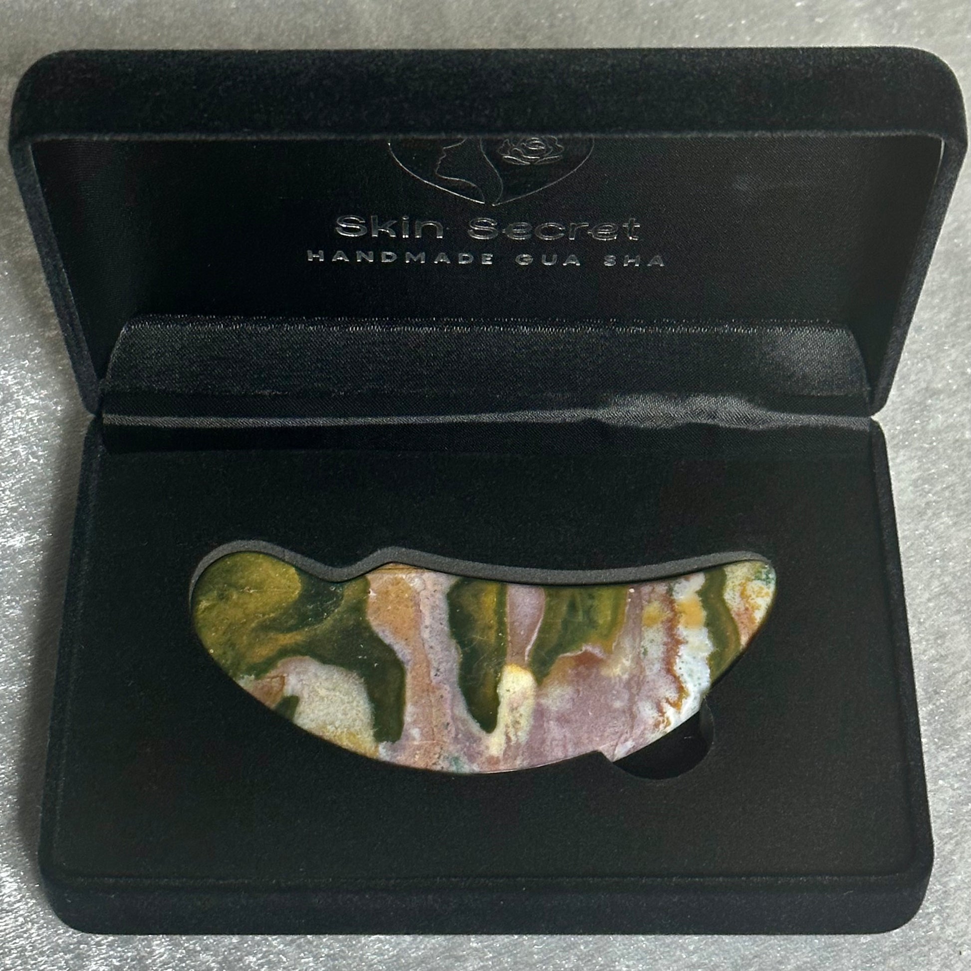 The moon gua sha measures about 10.5cm long, 4cm wide, and 1cm thick. Feel free to contact us if you would like to select your favorite one. We have new stock arriving often.